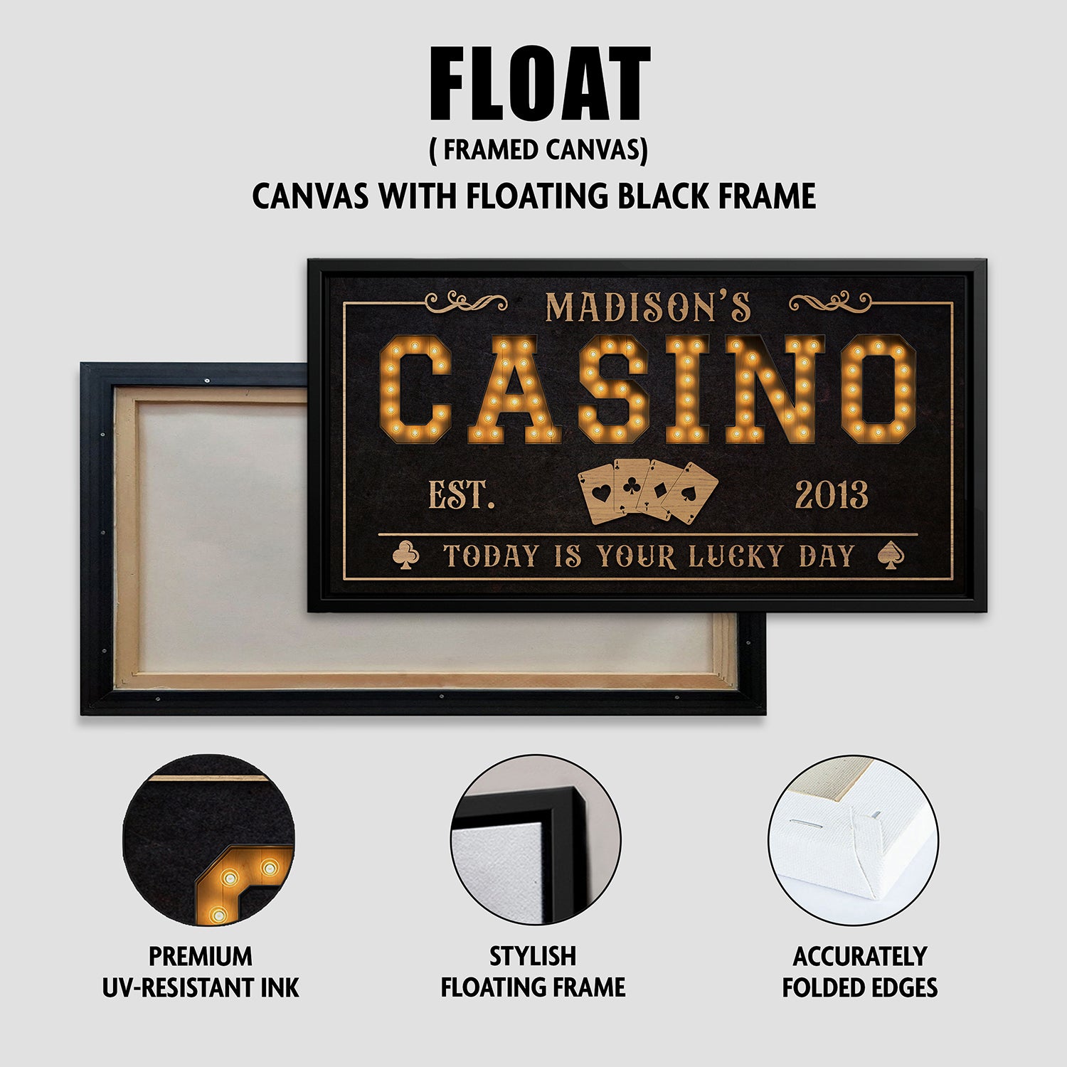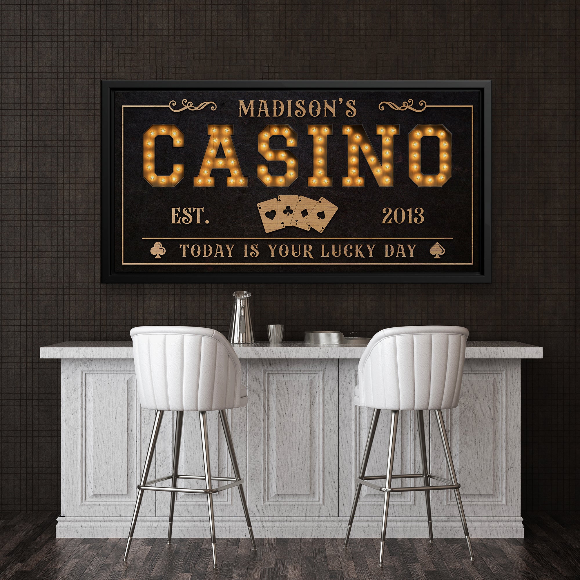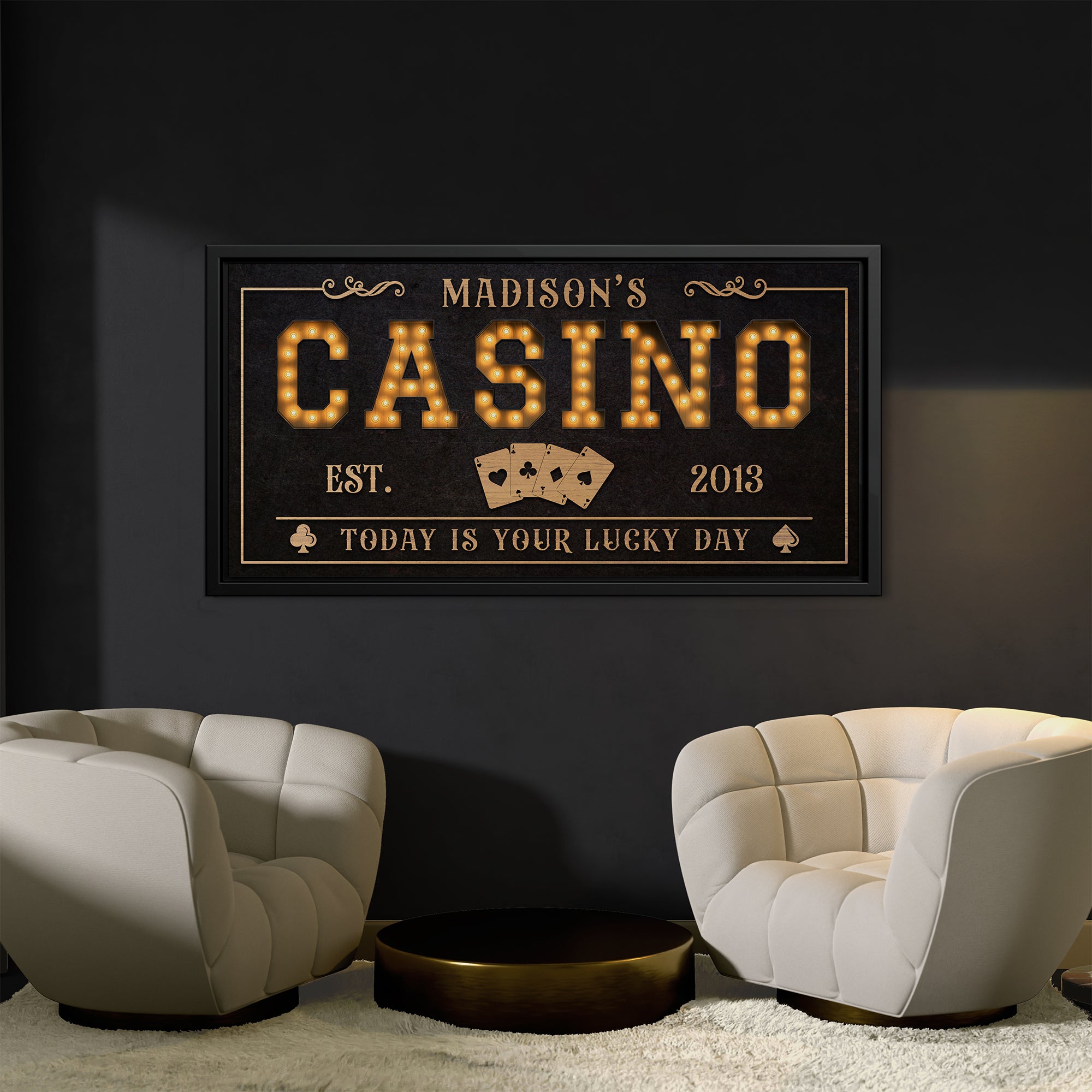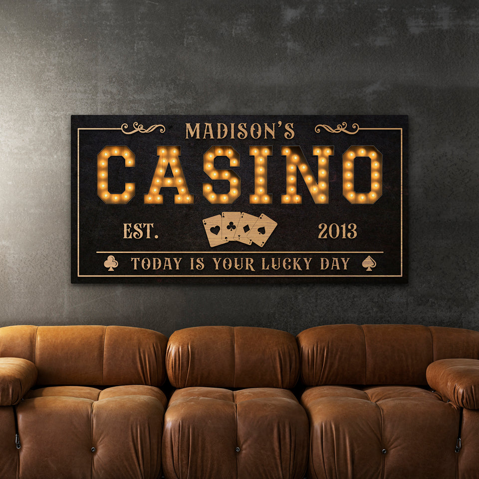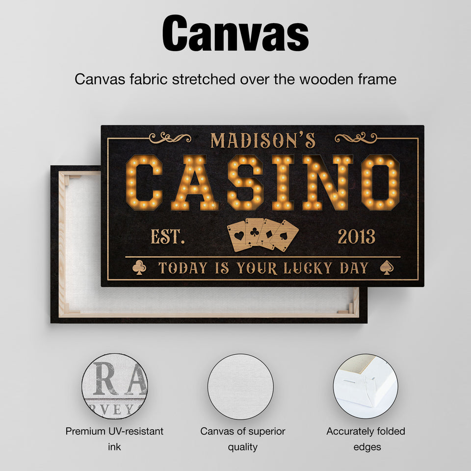 TODAY IS YOUR LUCKY DAY CASINO Night Sign Personalized Canvas Wall Decor with Custom Family Name