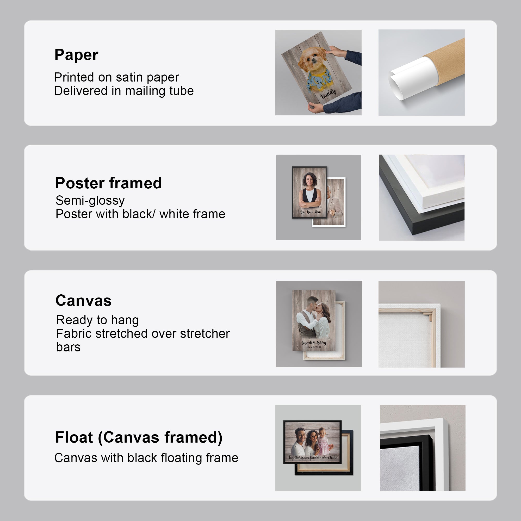 3. Custom portrait & shipping. Sit back and relax while our illustrators transform your photo into a masterpiece. If you request to see your design we will send you an artwork proof in 3 days or less to review and approve before we print and ship.