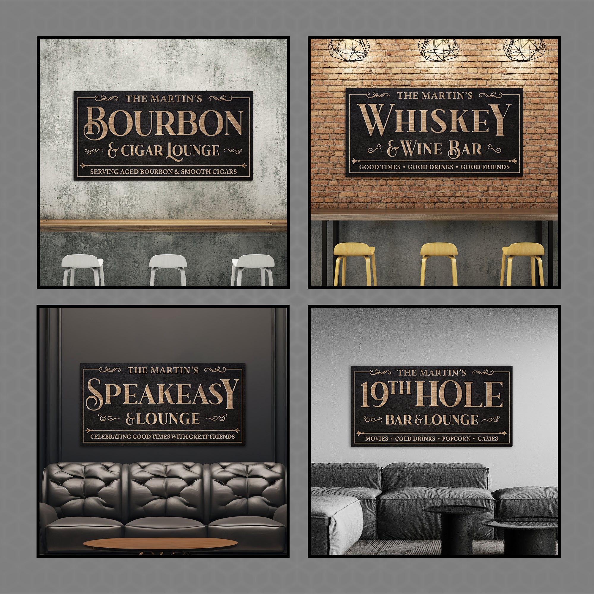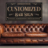 Custom Bar Sign Personalized Canvas Wall Decor with Custom Family Name