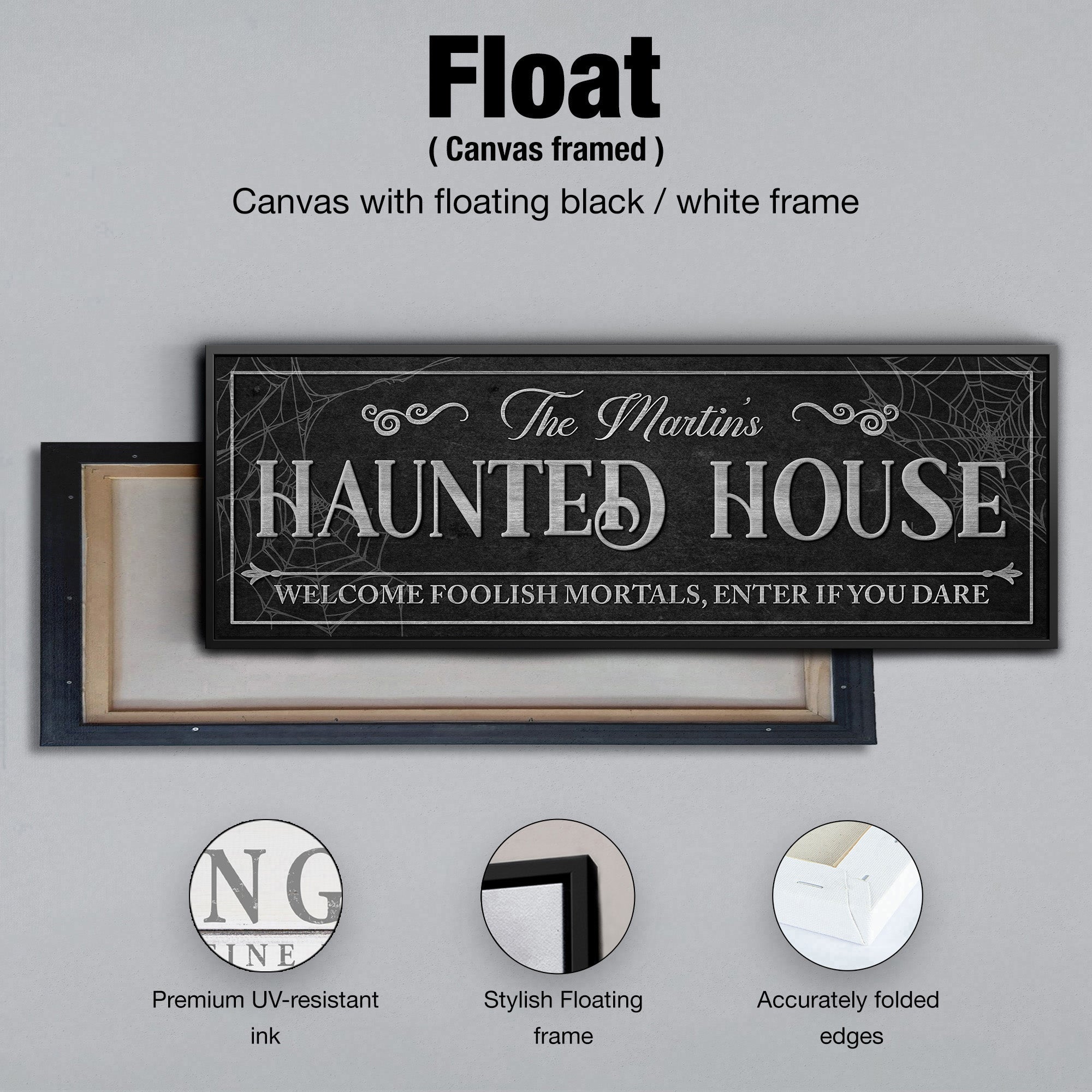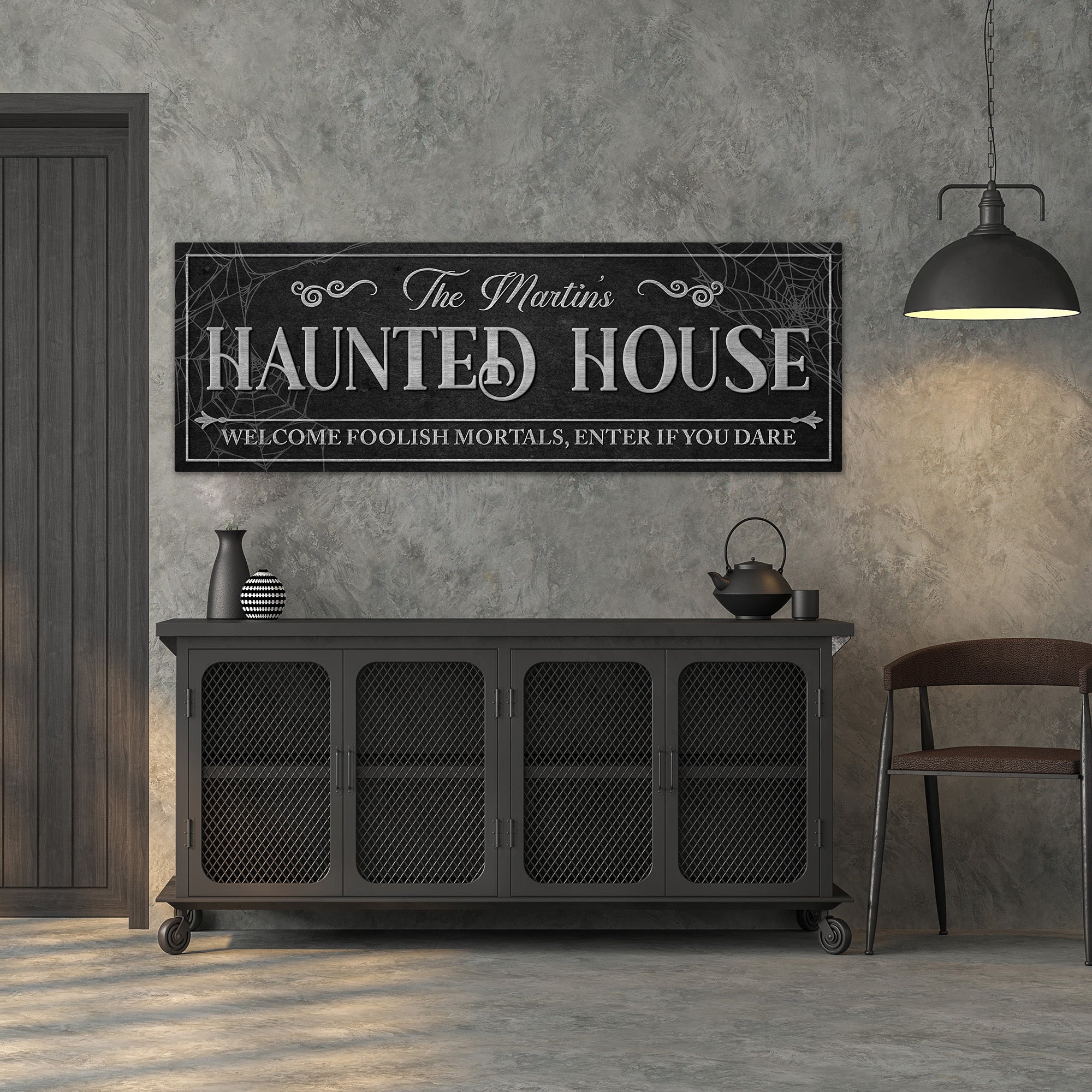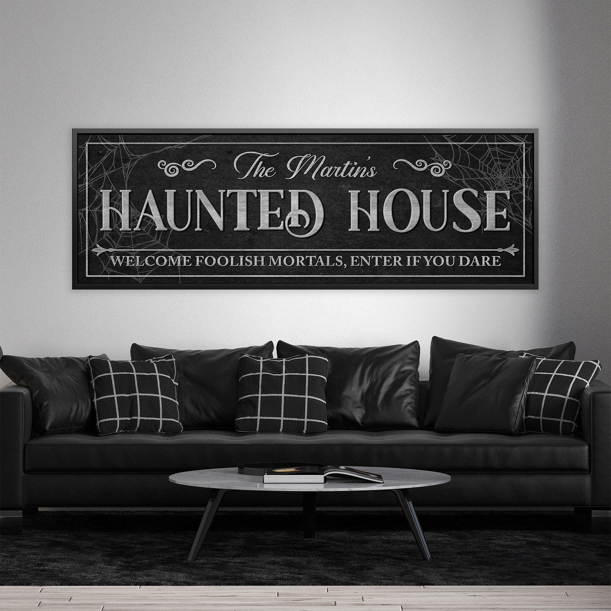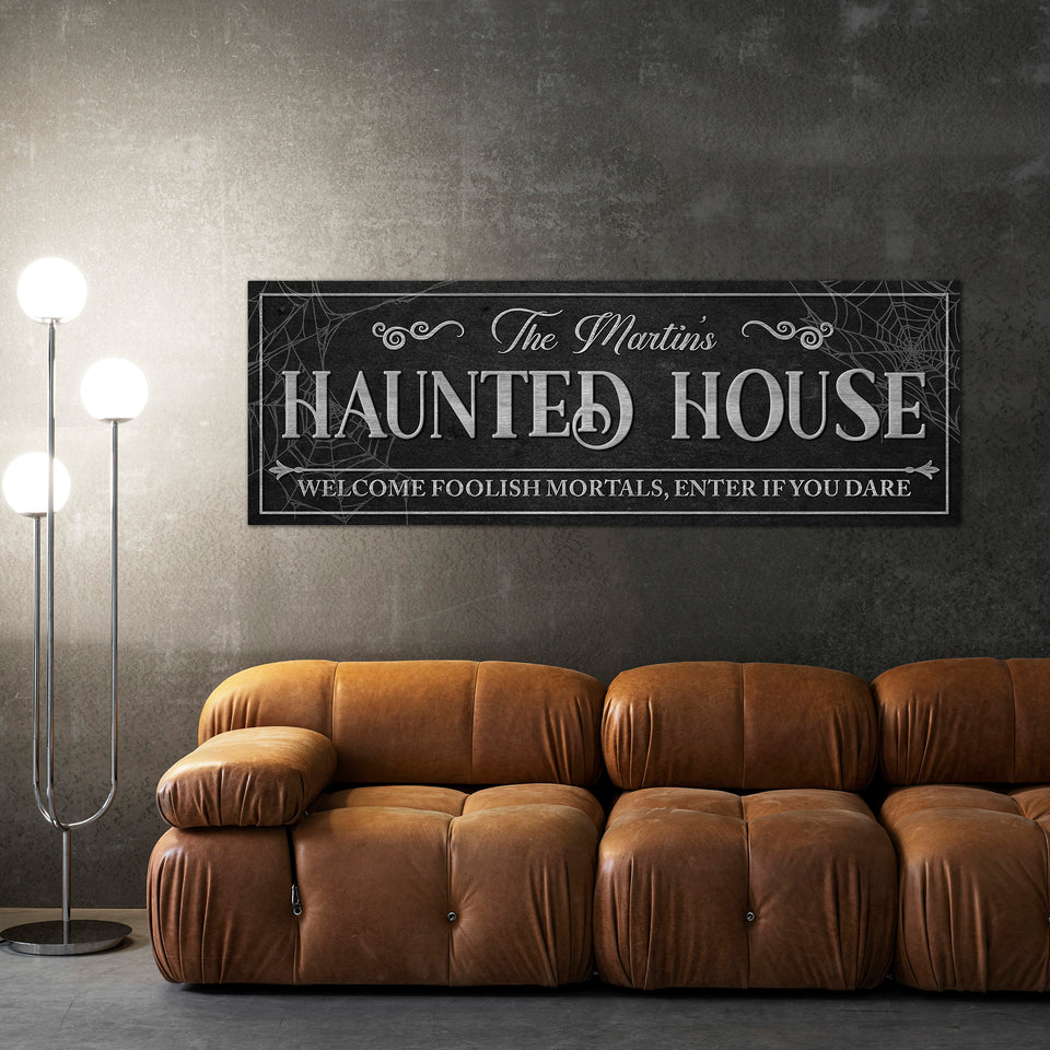 Haunted House Panoramic Personalized Canvas Sign