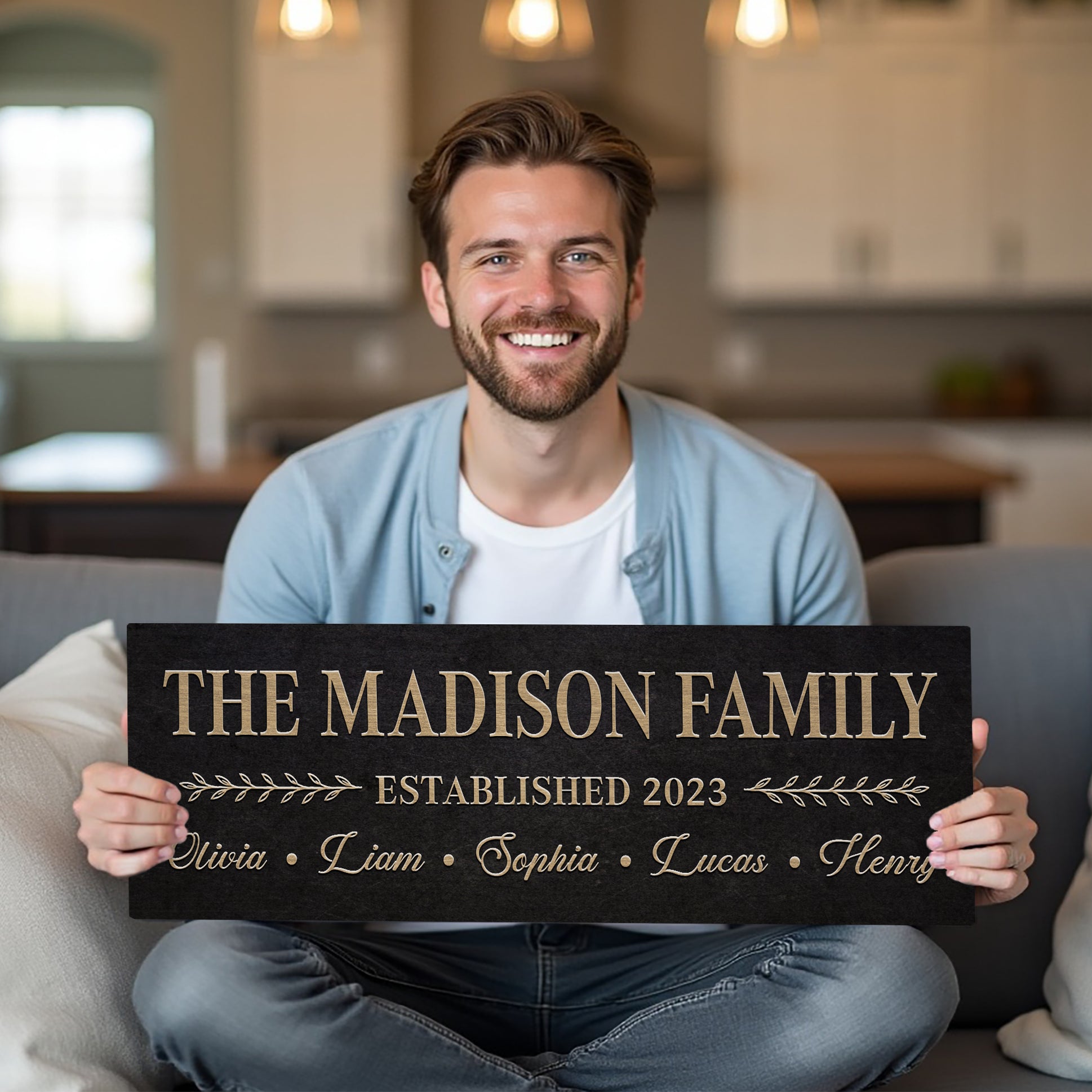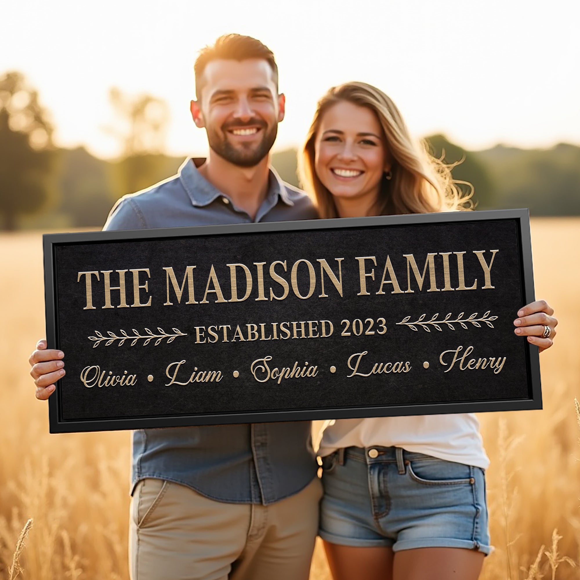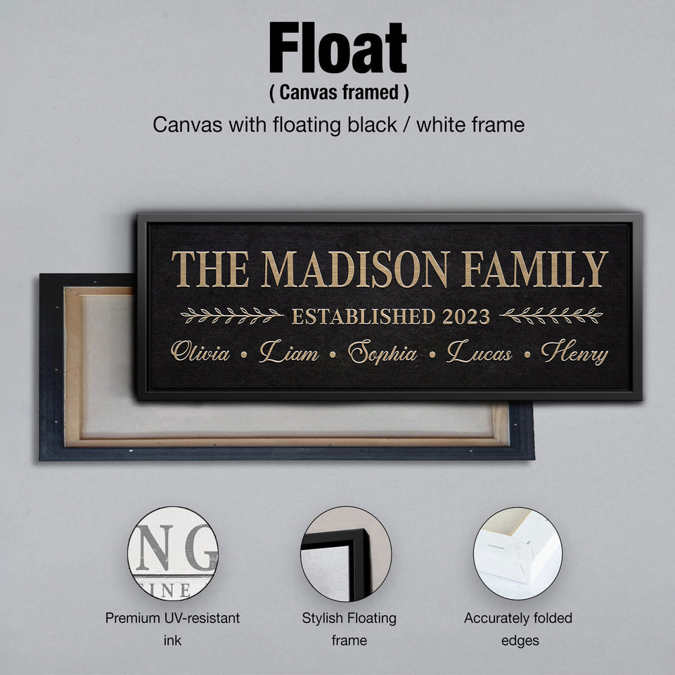 Family Custom Name Sign With Established Date, Custom Framed with Last Name and Family Members Names