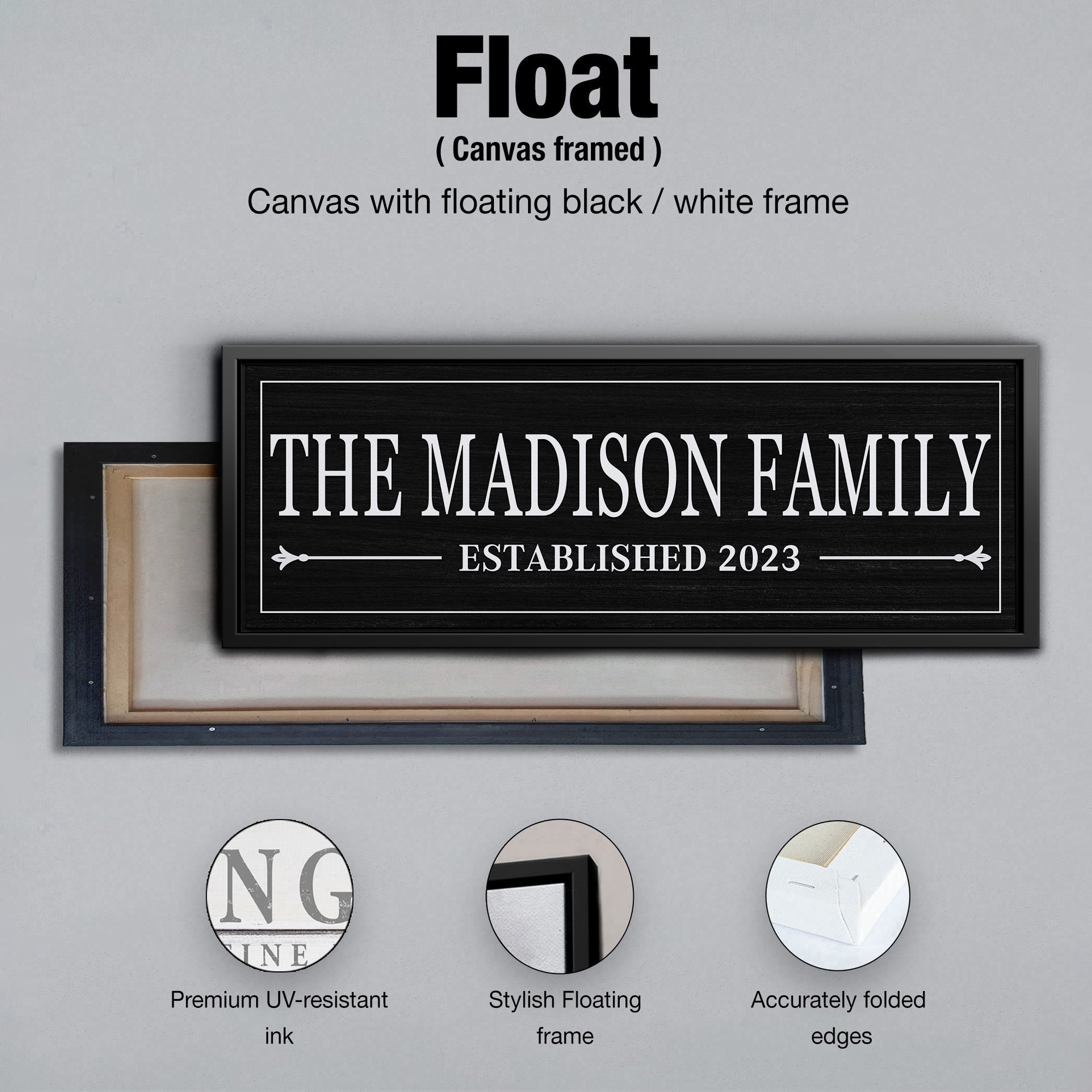 Family Name Sign Personalized Canvas with Date, Custom Framed with Last Name Housewarming Gift Anniversary