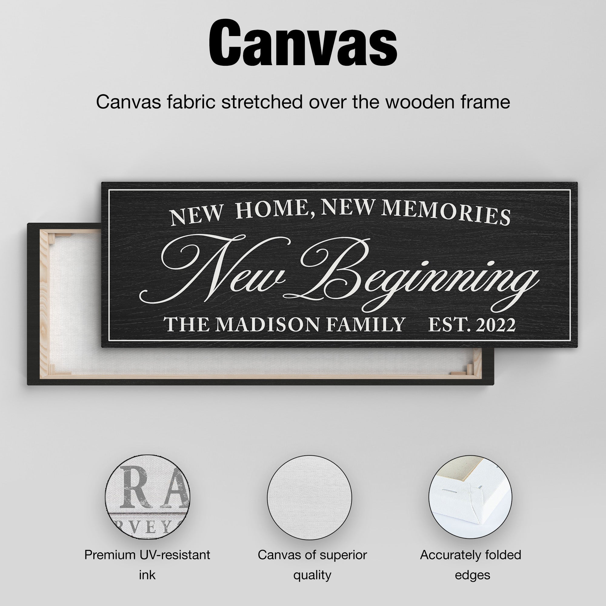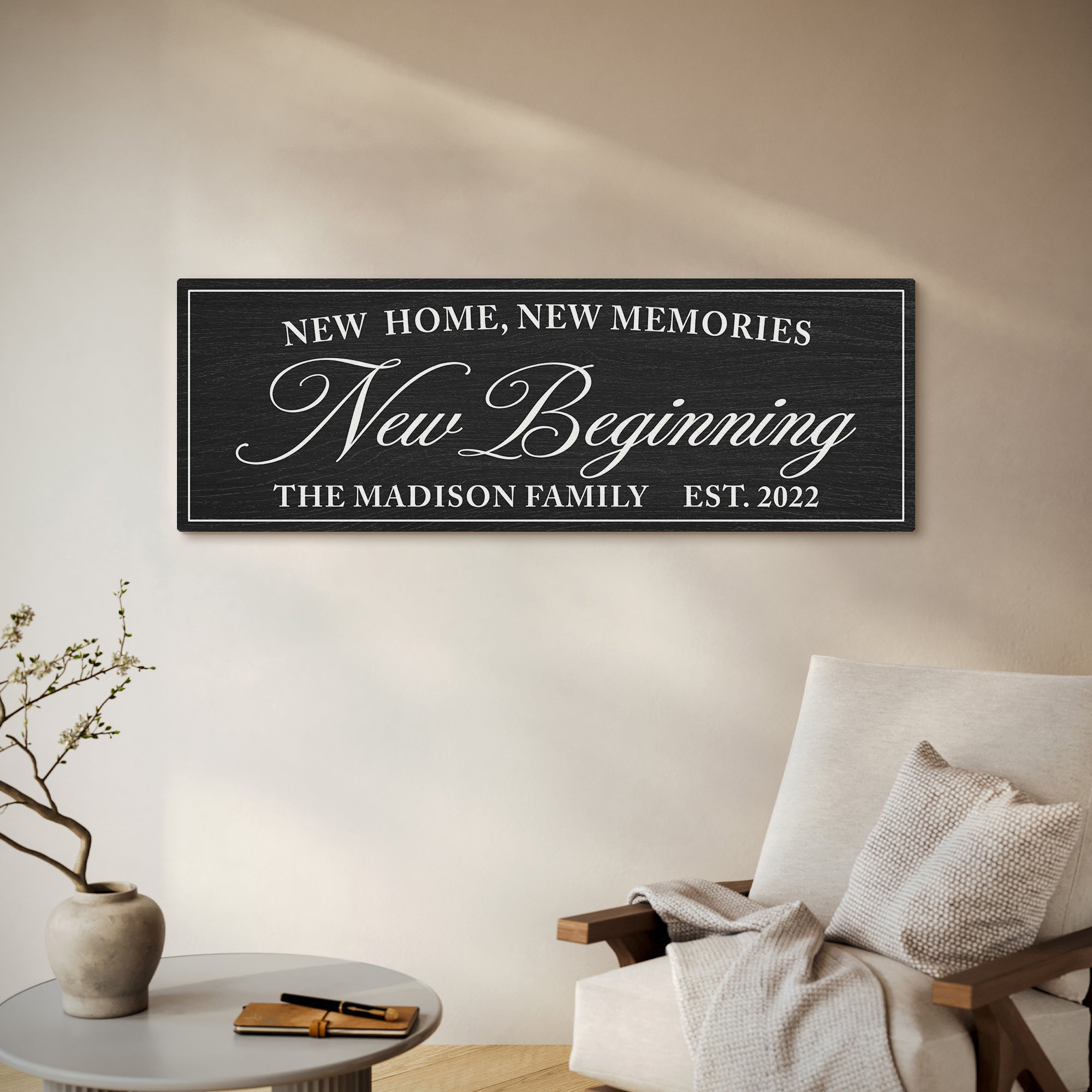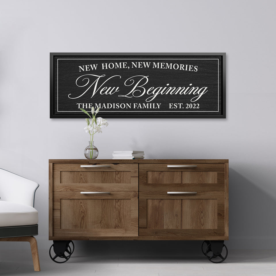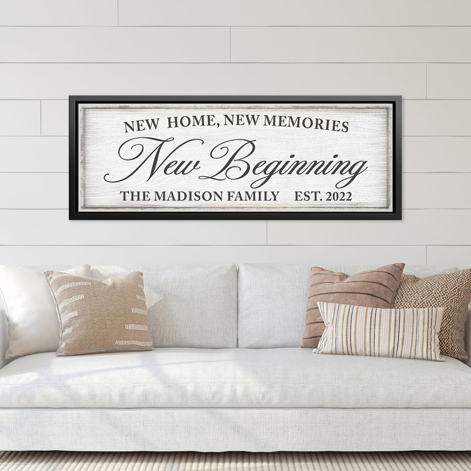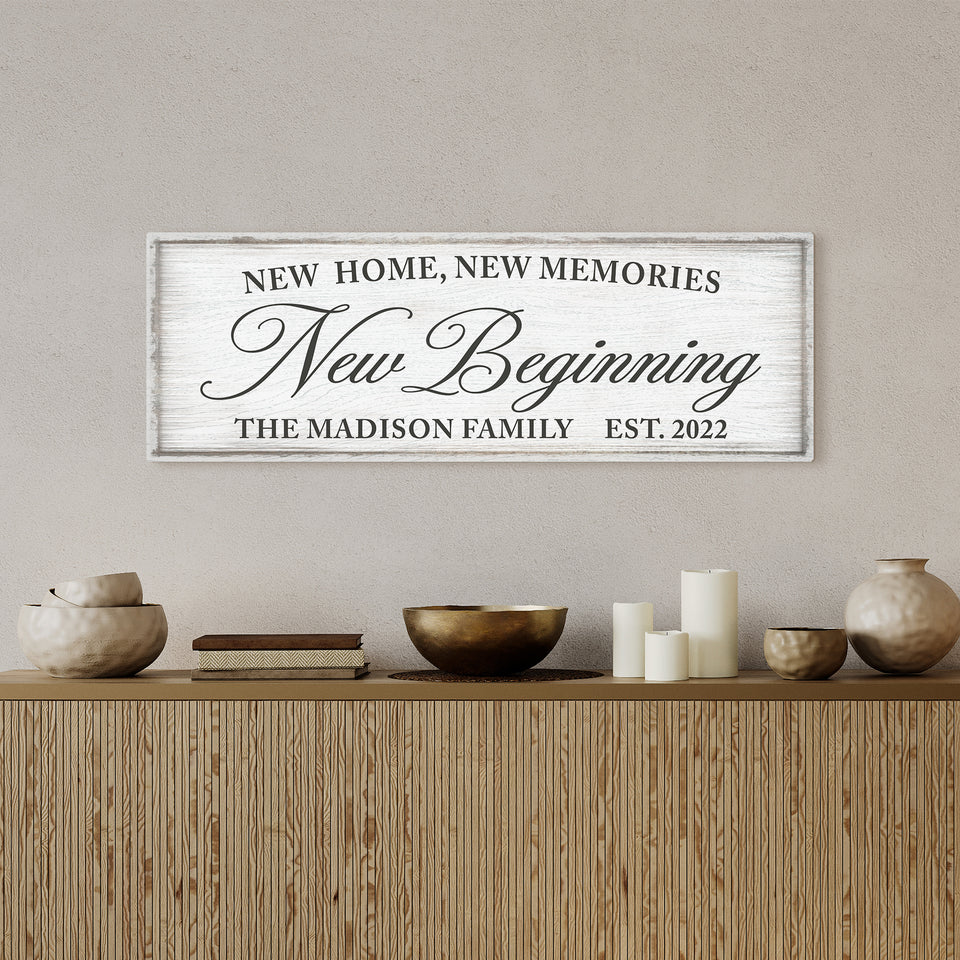 Personalized New Home, New Memories, New Beginning Canvas Family Name Sign