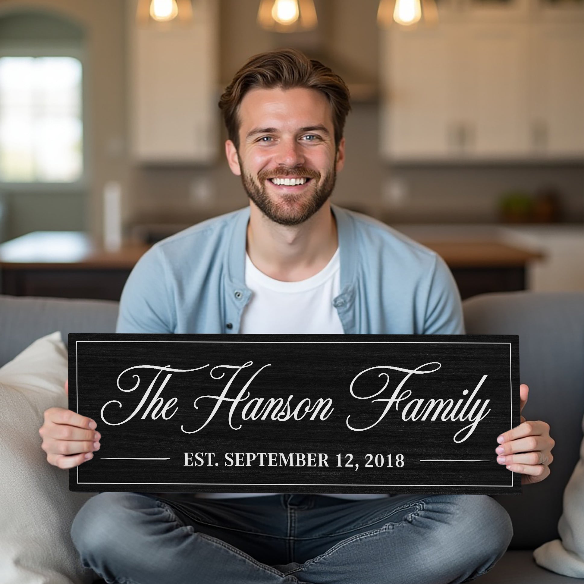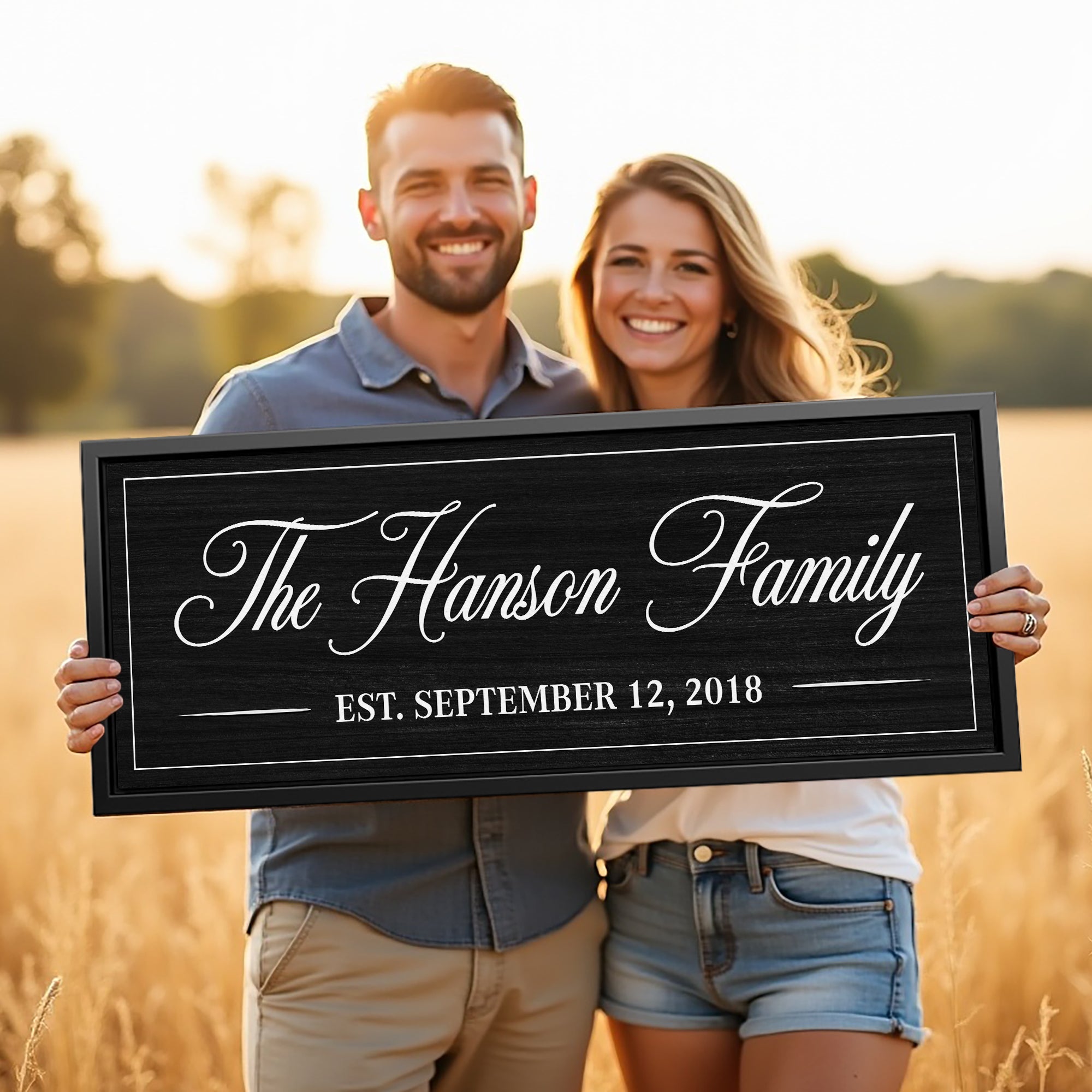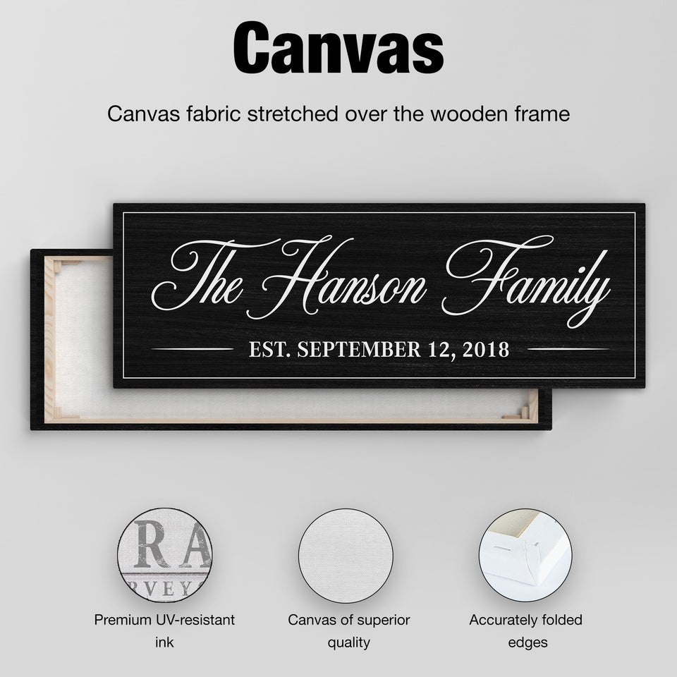 Personalized Family Name Canvas Sign with Established Date – Custom Wall Art, Gift for New Homeowners, Rustic Home Décor