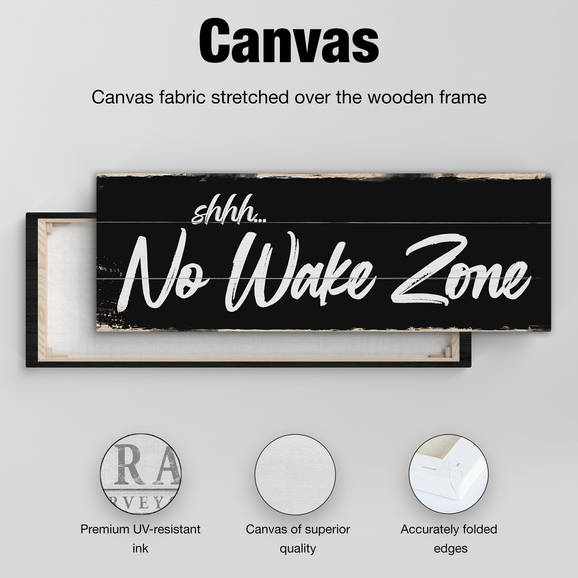 Shhh No Wake Zone Canvas Sign, Rustic Lakehouse Wall Art For Living Room Bedroom Decor