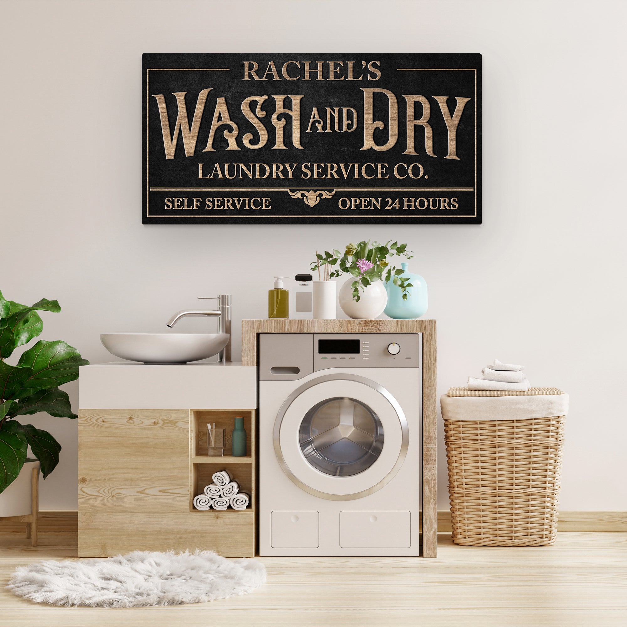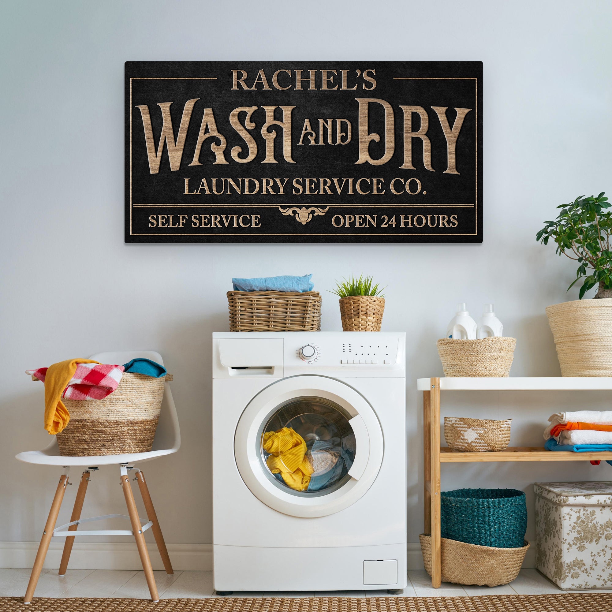 Personalized Wash & Dry Laundry Sign – Custom Laundry Room Wall Art