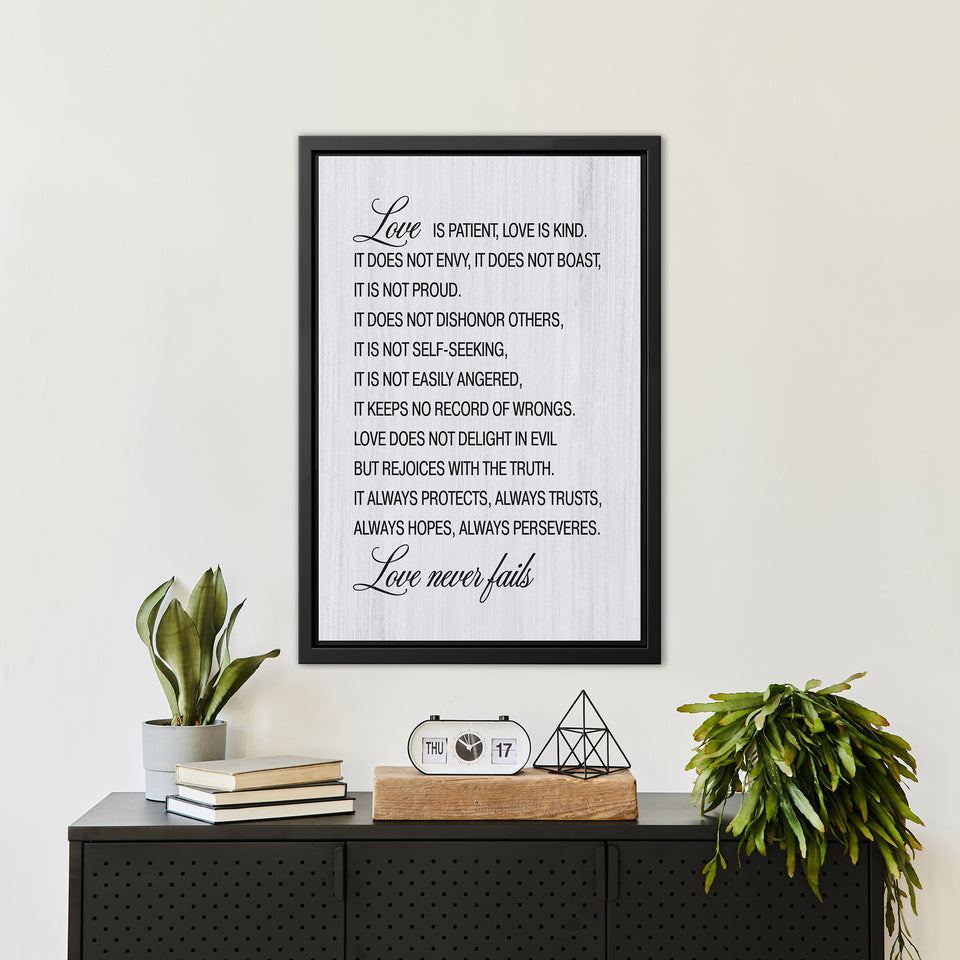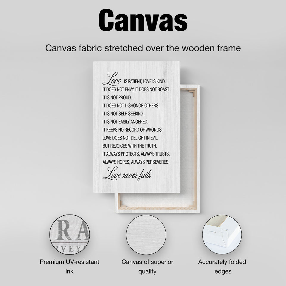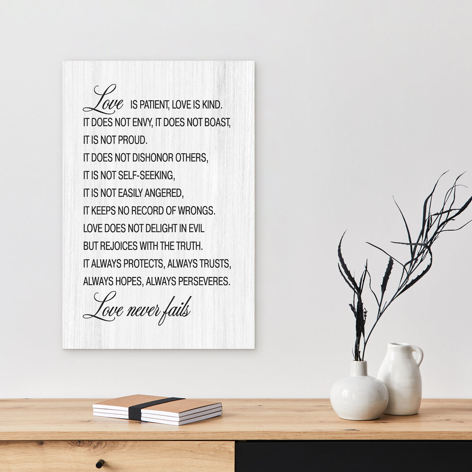 Love Is Patient Love Is Kind Canvas Wall Art – Farmhouse Style Christian Wall Decor
